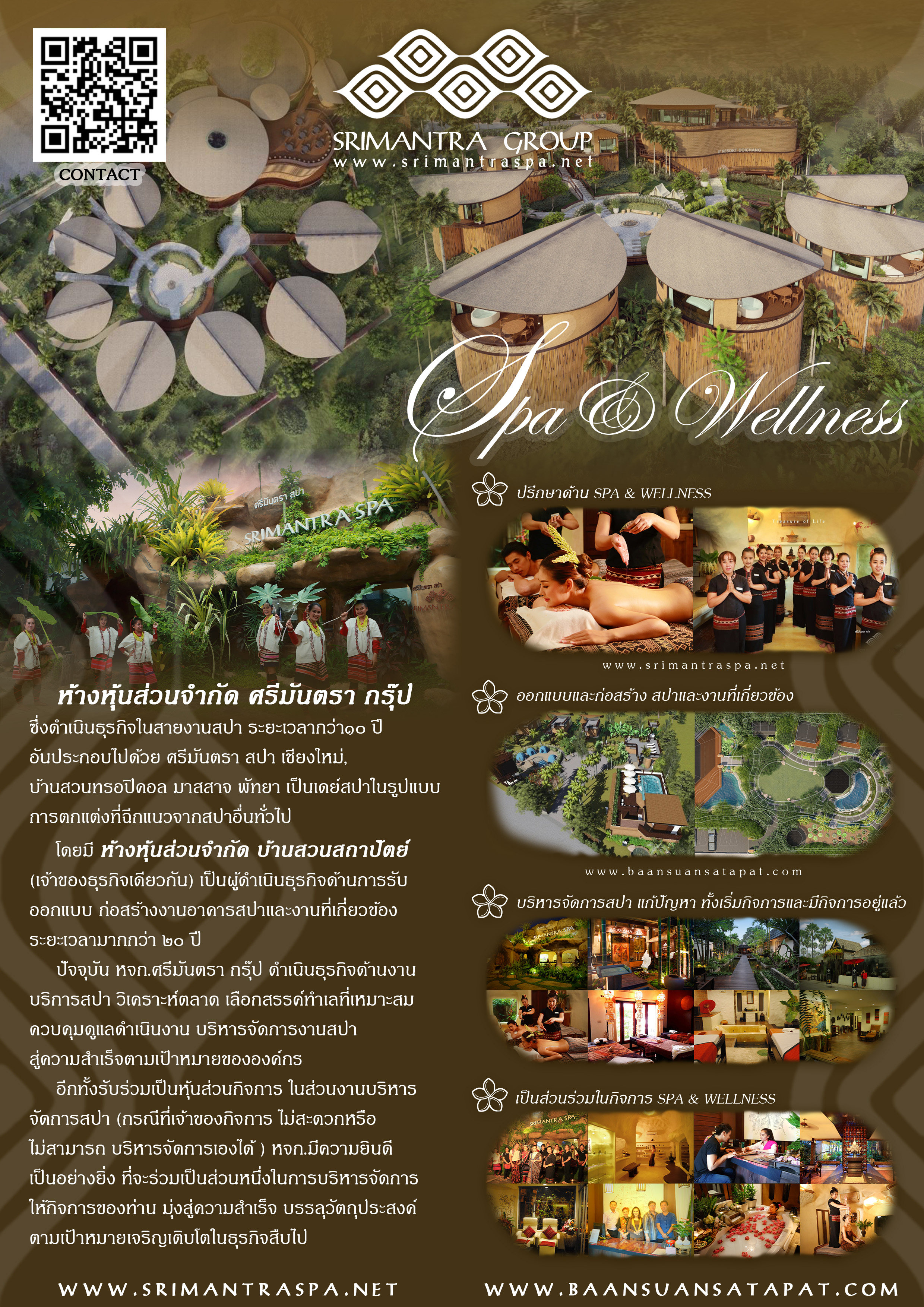 ห้างหุ้นส่วนจำกัด ศรีมันตรา กรุ๊ป ซึ่งดำเนินธุรกิจในสายงานสปา ระยะเวลากว่า10 ปีอันประกอบไปด้วย ศรีมันตรา สปา เชียงใหม่,บ้านสวนทรอปิคอล มาสสาจ พัทยา เป็นเดย์สปาในรูปแบบการตกแต่งที่ฉีกแนวจากสปาอื่นทั่วไป